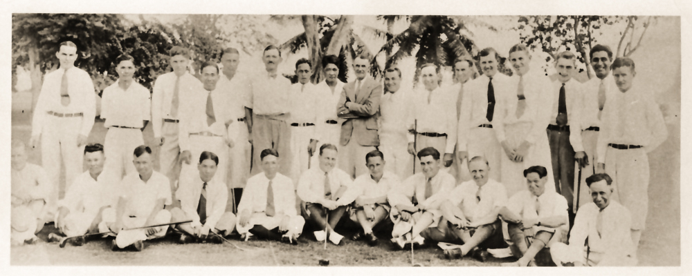 ハワイアンオープンの出場者たち。前列左から4人目が安田幸吉、後列左から4人目が宮本留吉。『日本プロゴルフ協会30年史』より